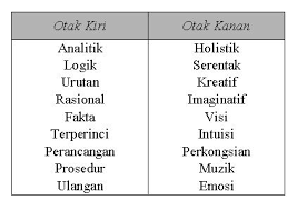 logika, dan komunikasi. Berikut fungsi otak kiri dan otak kanan secara